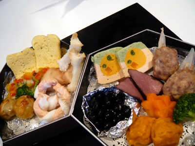 さてさて、暮れにコラムにも書いた「フレンチおせち」がお正月の祝い膳にどーんと登場!